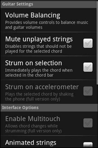 Na versão completa, o usuário tem acesso a guitarras clássica, acústica e elétrica, cada uma com som realista, além de recursos como sobreposições de acordes e letras, e a capacidade de tocar junto com qualquer música armazenada no dispositivo. A versão Lite é suportada por anúncios e requer permissões adicionais para funcionalidades específicas, mas ainda assim oferece uma sólida introdução ao mundo da guitarra digital.